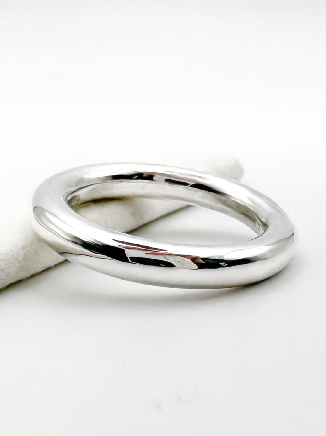 Als erstes wird das Silber in Form gebracht. Dies Passiert durch Walzen und Biegen, bis der Ring die gewünschte breite und Form hat.